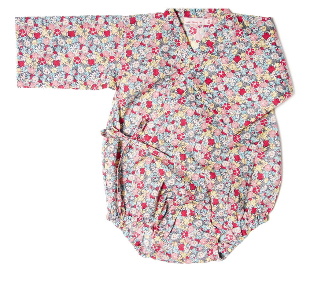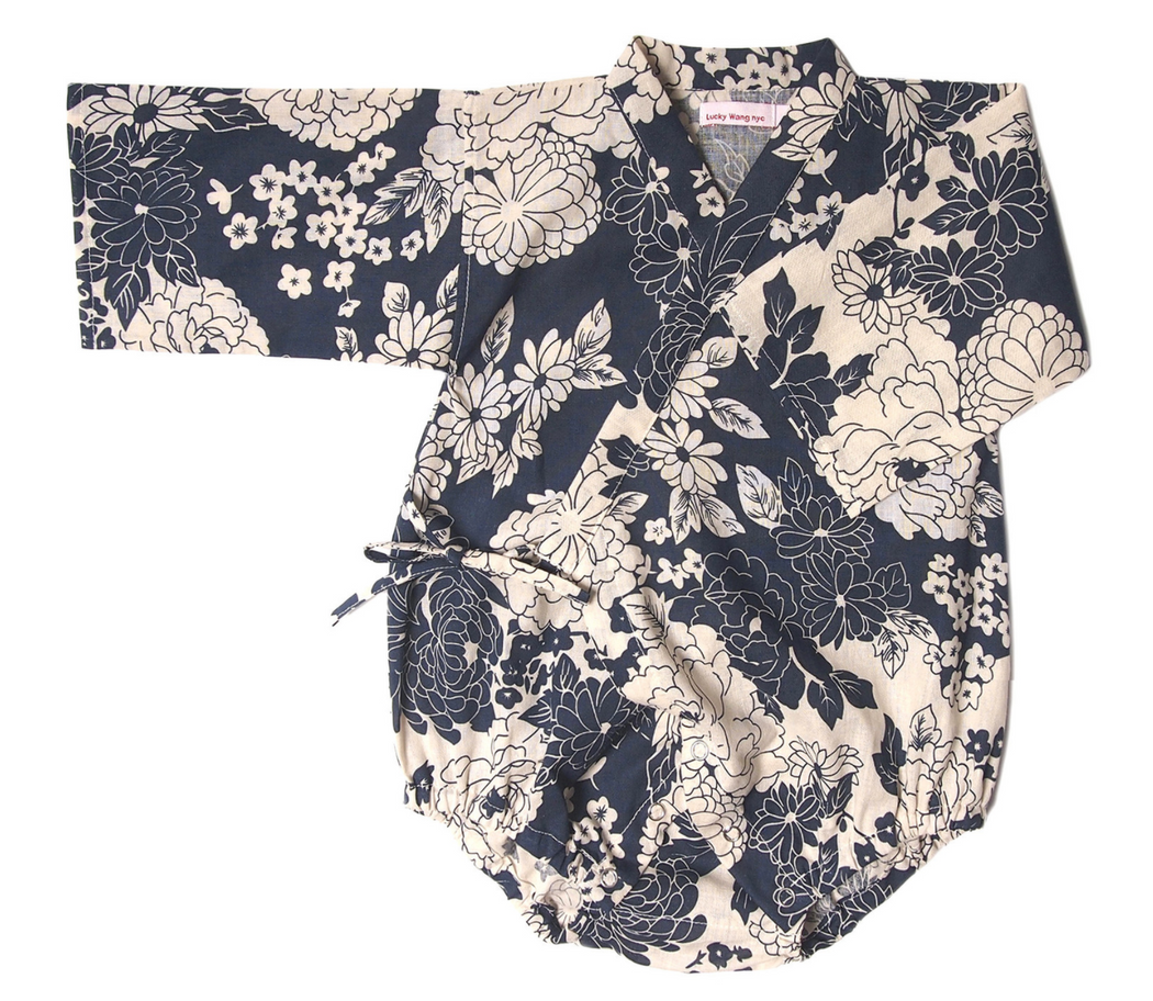 The original and most popular staple from Lucky Wang. This kimono one piece is a versatile unisex garment for every season. Easy to wear bottom snap buttons, and side ties, this onesie remains their signature Lucky Wang Must Gift year after year.