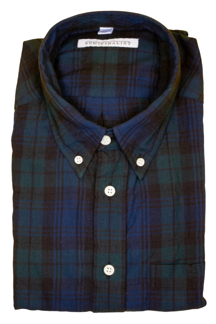 Our favorite plaid - the iconic black watch - perfect hues of blue and green that flatter and go with everything. Woven in Japan, the super soft fabric has a subtle crinkle that is brimming with character. This shirt is one to live in.
